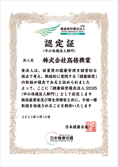 国土交通省 湯沢河川国道事務所表彰式 現場代理人安全表彰